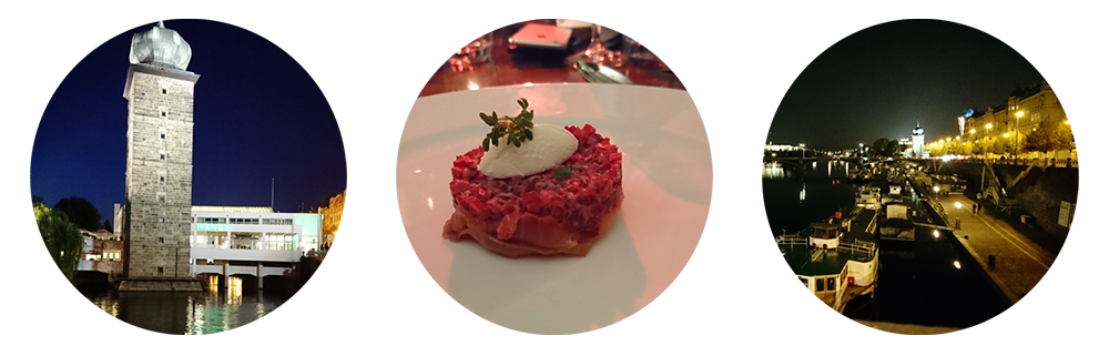 Päivän vapaamuotoisemman yhdessäolon jälkeen oli taas aika kerääntyä yhteen nauttimaan illallista ja jatkaa tutustumista muihin Greenstepiläisiin. Illallispaikaksi oli valikoitunut Vltava-joen vieressä sijaitsevan Manes Galleryn ravintola. Korkeakattoinen, sopivasti juuri vihrein värein koristeltu ruokailutila oli kauniisti aseteltuine ruokineen täydellinen valinta viimeiseen illanviettoon.