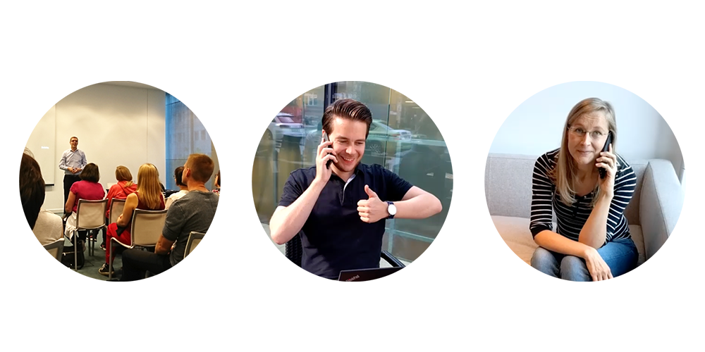 Kolmen vierailijaesityksen jälkeen tiesimme yritystoiminnan perustamisesta Tšekkeihin, toimintojen tehostamisesta robotiikan avulla sekä kansainvälisen taloushallinnon ammattilaisten verkoston hyödyistä. Oli käytännön harjoittelun aika! Monissa kasvavissa yrityksissä tulee kiinnittää erityishuomiota kommunikaatioon ja viestintään toimintaympäristön muuttuessa. Koska onnistunut viestintä on yrityksen sujuvan toiminnan edellytys, saimmekin kotitehtäväksemme videon suunnittelun ja kuvaamisen tuleville kollegoillemme. Yhteensä kuudelle ryhmälle jaettiin kolme aihetta: Proaktiivinen kommunikaatio asiakastyössä, yhteistyö ja kommunikaatio asiakastiimissä sekä avoin työkulttuuri. Ryhmäläisillä olisi sunnuntai-iltapäivään asti aikaa tehdä video, joka kertoisi uusille kollegoille Greenstepiläisyydestä. Paikoillanne, valmiit, kuvaa!