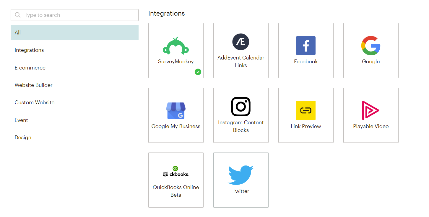 Mailchimp tarjoaa lukuisia valmiita integraatioita