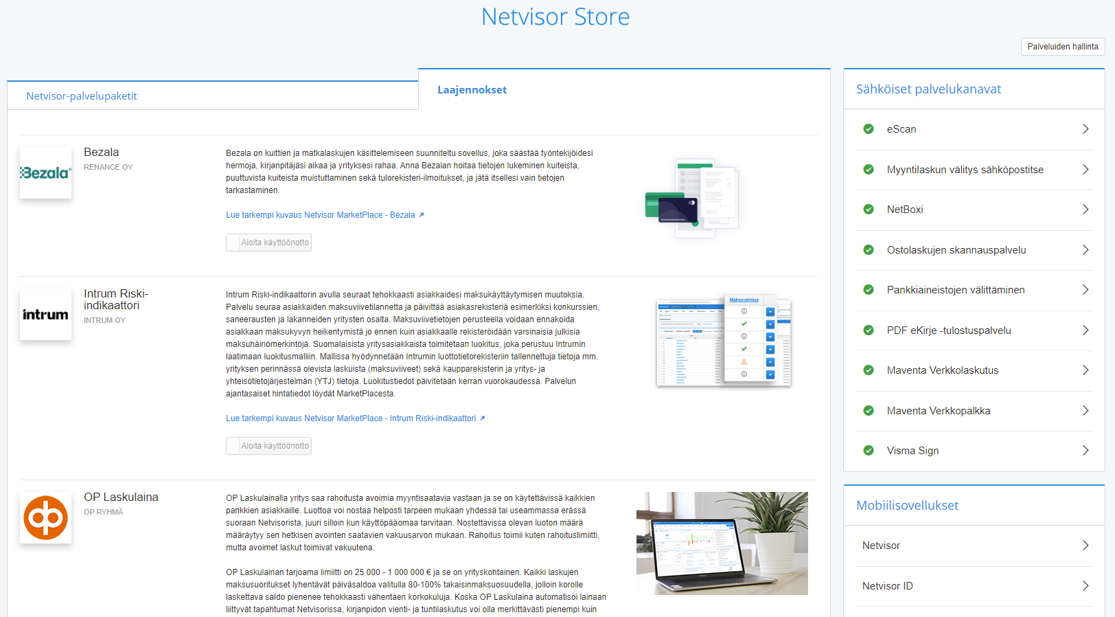 Netvisor -taloushallintojärjestelmästä löytyy valmiita laajennoksia (integraatioita) muihin sovelluksiin