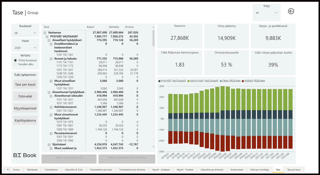 Esimerkkejä BI Bookin valmiista raporttipohjista: