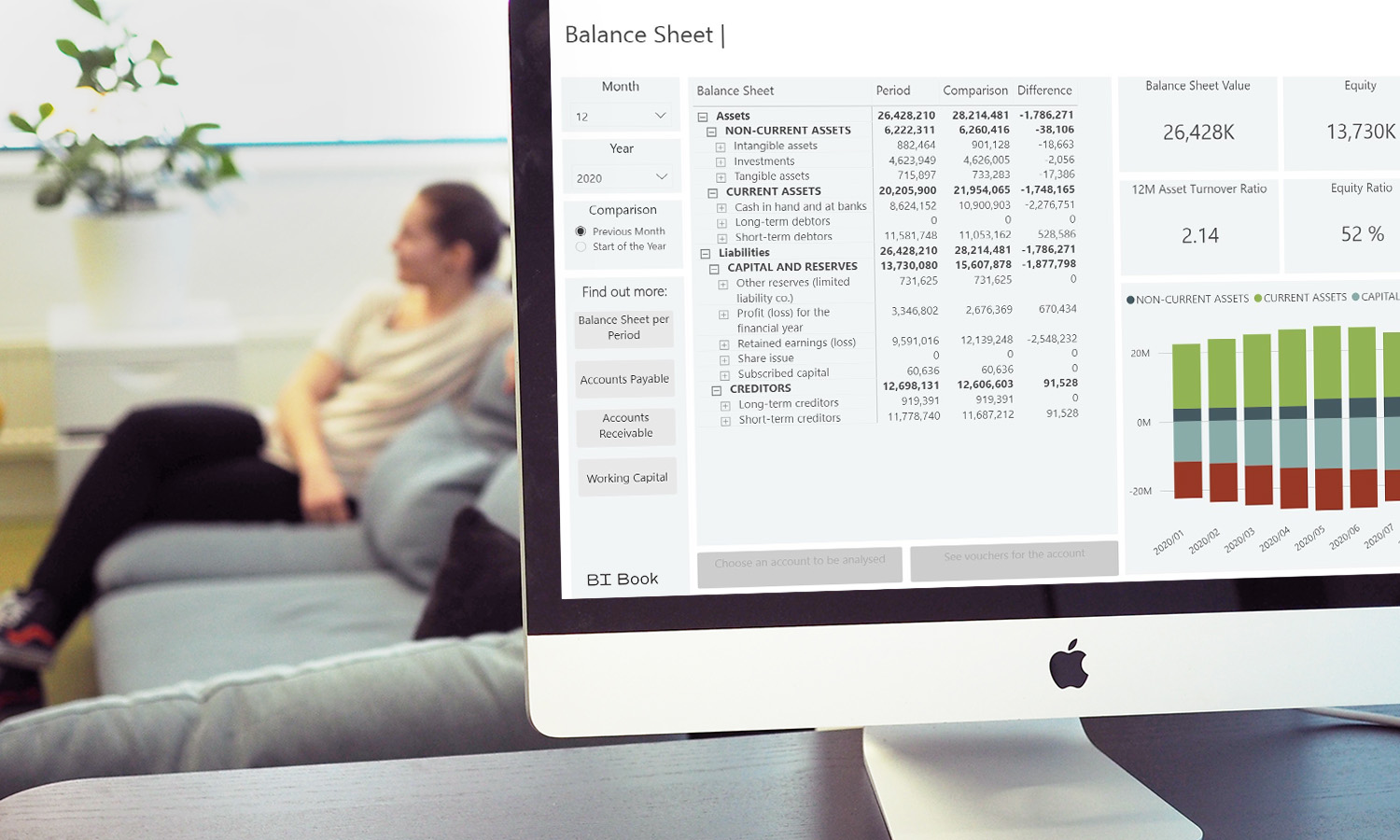 BI Book hakee raportoitavan datan suoraan NetSuitesta ja esittää sen automatisoidusti visuaalisten dashboardien avulla. BI Bookissa raportteja pystyy helposti luomaan ja muokkaamaan muutamilla klikkauksilla eri kohderymille. BI Bookin avulla saat myös näppärästi esimerkiksi hallitusvalmiit raportit sekä tarpeisiinne kustomoidut taseet ja tuloslaskelmat NetSuite-datasta. BI Book mahdollistaa raportoitavan datan esittämisen erilaisin graafein, kuvioin ja kartoin.