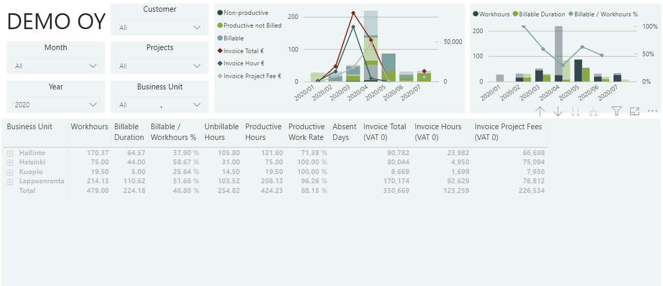 Käyttämällä BI Bookia toiminnanohjauksen seurantatyökaluna, voit visualisoida toiminnanohjauksen järjestelmän datan tehokkaasti ja paikantaa pullonkaulat sekä seurata kehitystä ja onnistumisia. BI Bookin nettisivuilta pääset lukemaan tarkemmin eri integraatioista järjestelmäkohtaisesti. BI Book voidaan integroida esim. seuraavien järjestelmien kanssa: Severa, NetSuite, Odoo, Business Central, ValueFrame, Tampuuri ja PlanMill.