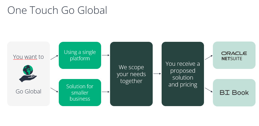 Vaikka olemme luoneet kattavan ja hyvin toimivan kumppanuusmallin tytäryhtiöiden hallintaan ja pitkälle automatisoituun taloushallintoon yritysryhmän sisällä NetSuiten ympärille, voi kansainvälistymishankkeessa edetä myös hajanamisemmalla järjestelmäarkkitehtuurilla. Näissä tapauksissa liiketoiminnan läpinäkyvyys hoidetaan BI Book -raportointityökalullamme.